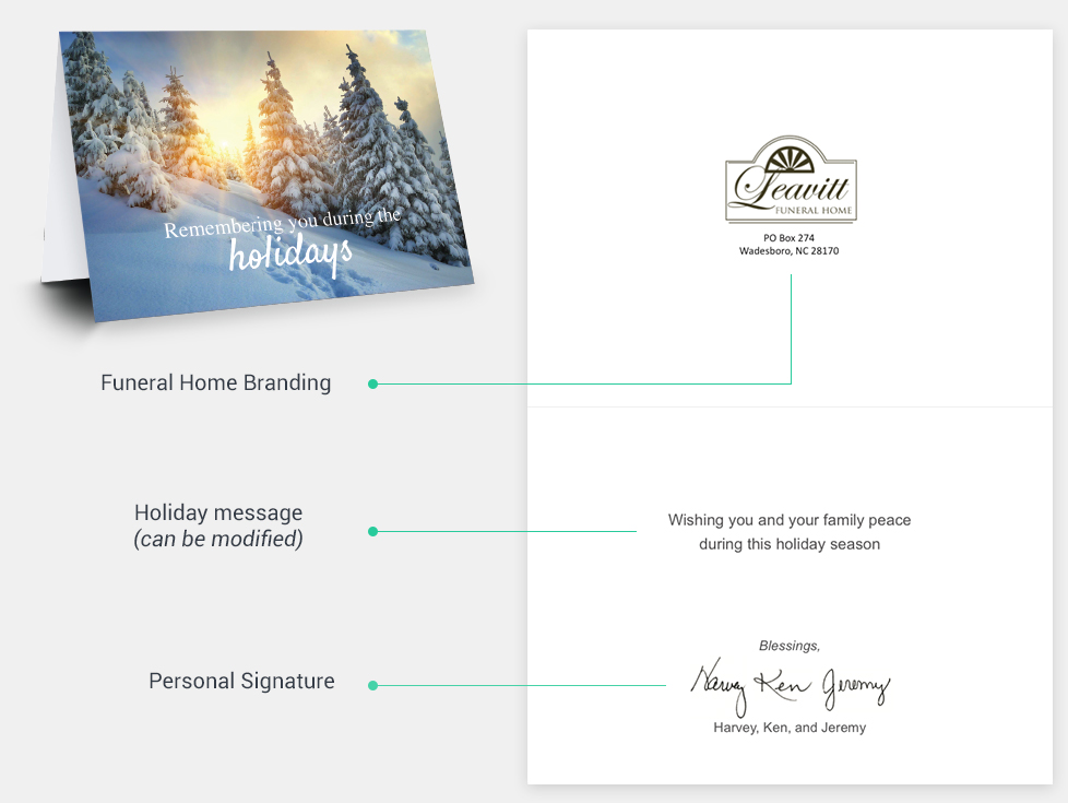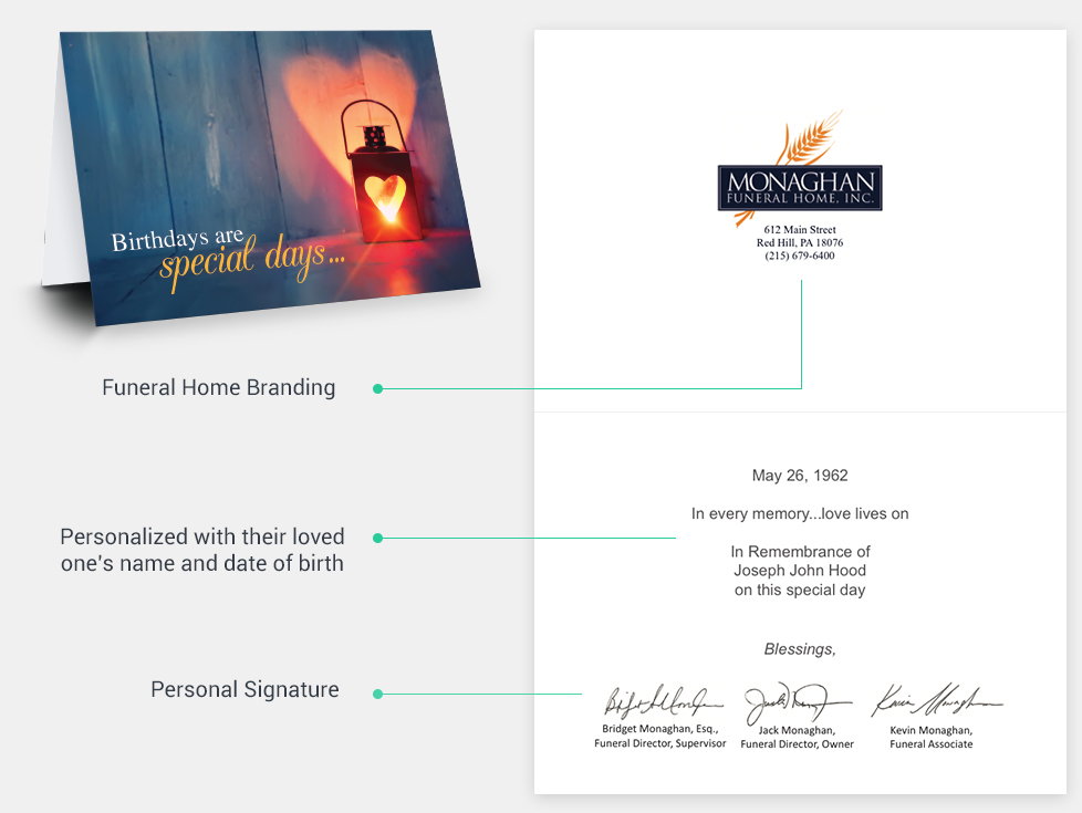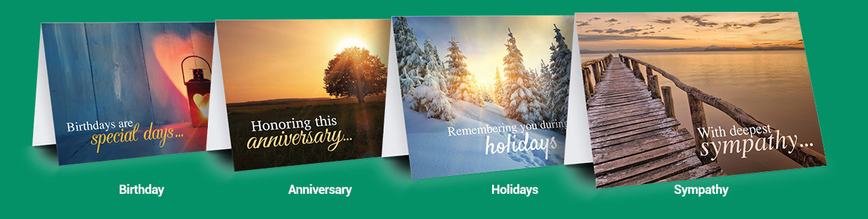 Heartfelt cards are mailed to the family on the following important dates during the first year following a loss.